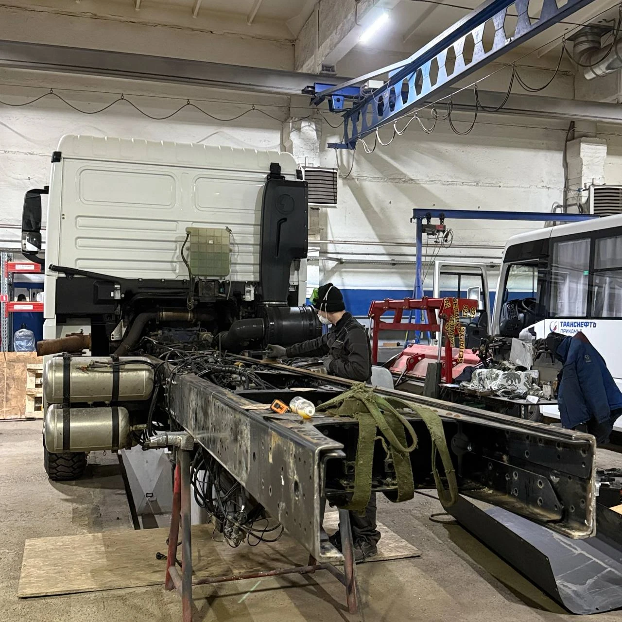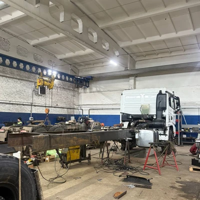 По заявке клиента мы выполнили раздвижку межколесной базы и удлинение заднего свеса на автомобиле Шакман Х3000, при этом длина свеса подбирается с учётом допустимых нагрузок на мосты, а также должна правильно соотноситься с межколёсной базой. Данная связка позволяет установить на шасси надстройку удлиненного размера, например бортовую платформу.
